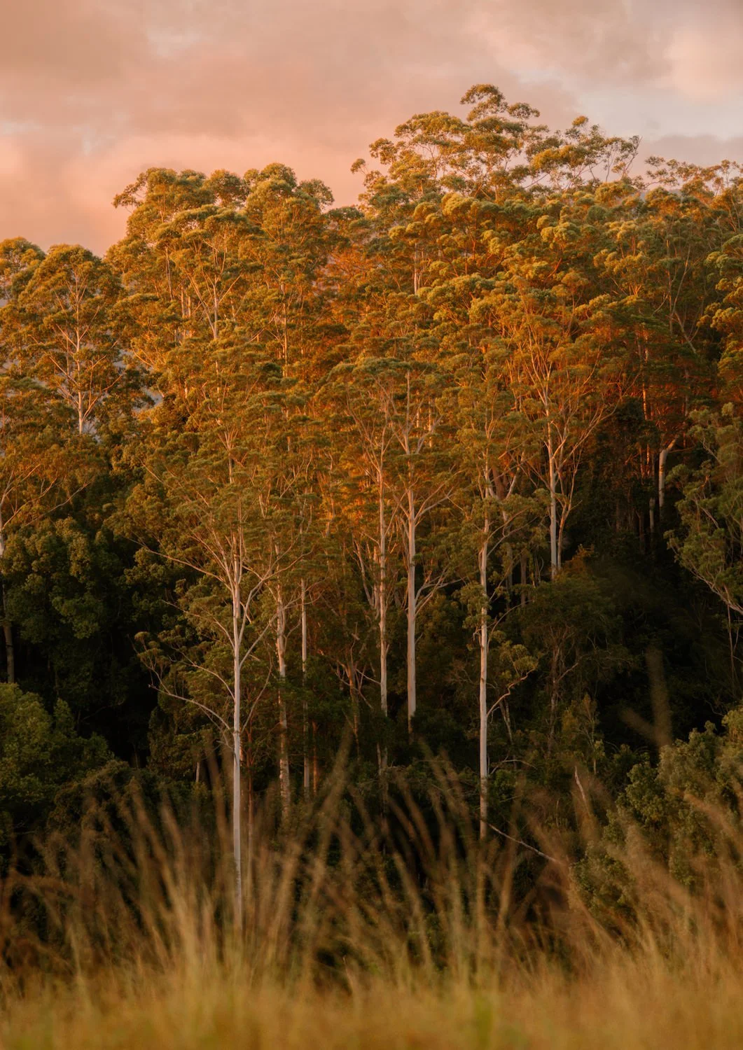 Rising from the canopy, Mirrangen/The Cathedral glows in the late sun, its surface weathered by millenia of wind and rain. Below, a flock of white cockatoos drift silently across the forest, a fleeting movement against an ancient form.