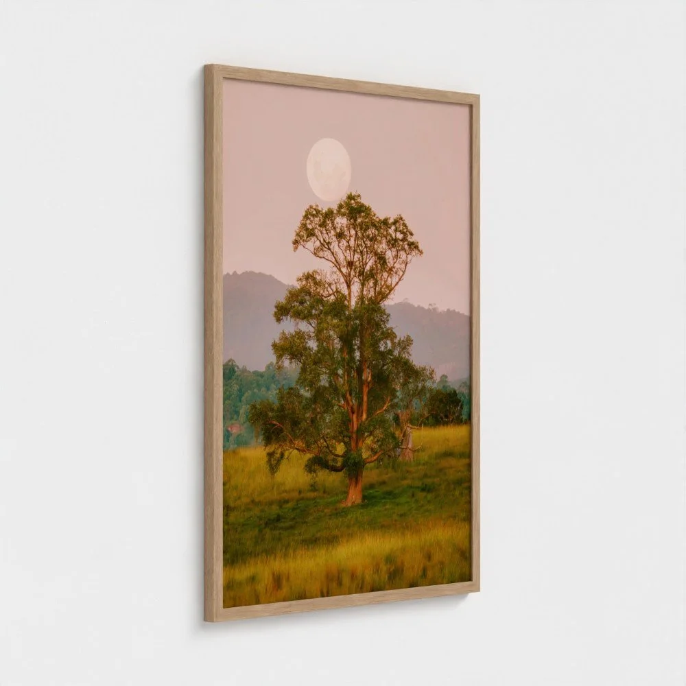 • Our archival-grade giclée prints are produced on 260 GSM Fine Art Matte Paper designed for longevity and exceptional tonal depth. Frames are custom-built from sustainably sourced Tasmanian oak and finished with specialty anti-reflective Art Glass, arriving ready to hang with D-rings. We partner with a trusted premium fine-art printer to ensure every print is crafted, handled, and shipped with expert care.